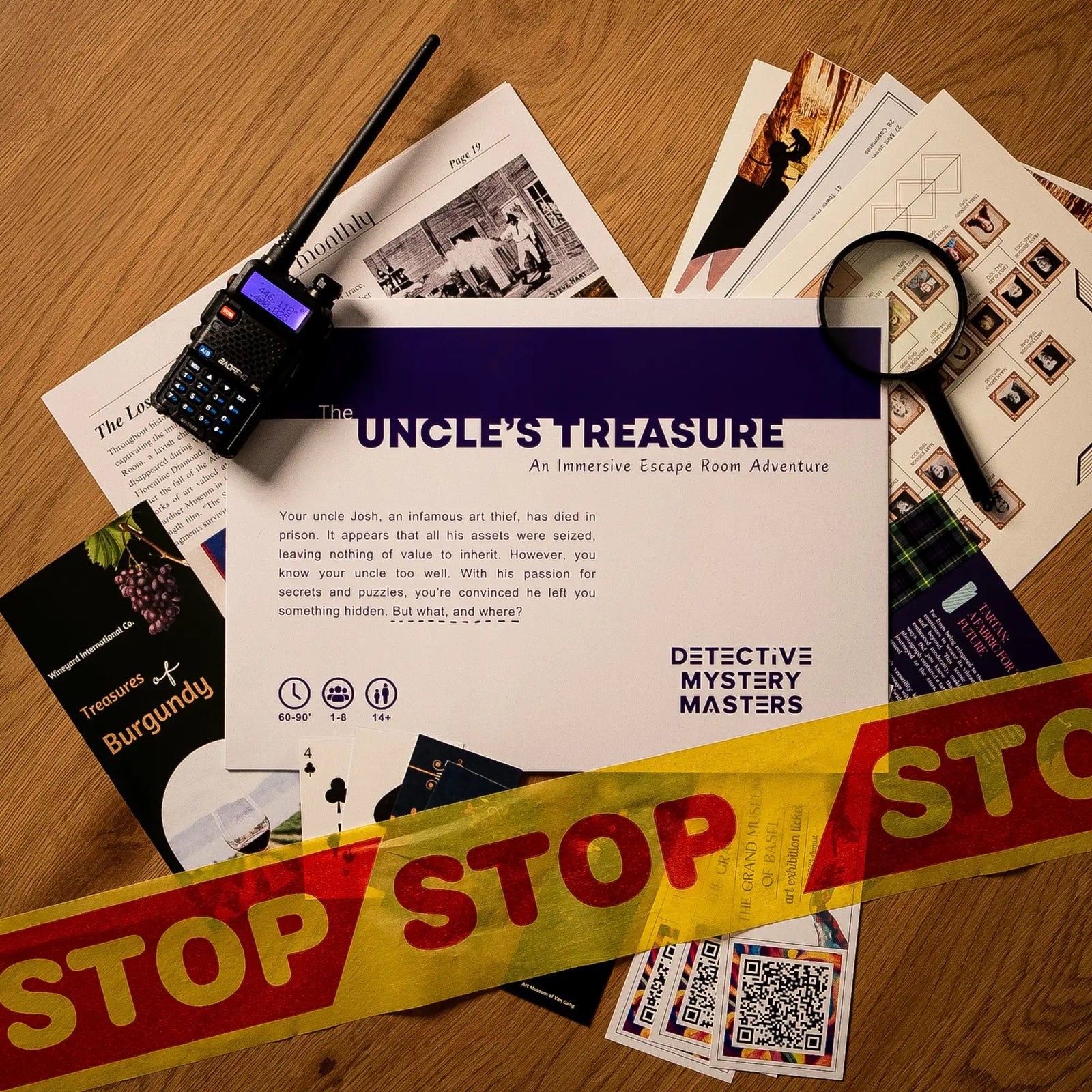 You open the envelope. Photos, notes, and tickets slide onto the table. It feels like a gift. The mystery starts now.